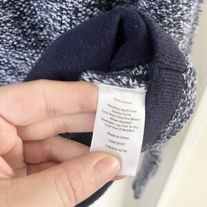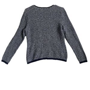 Talbots Women's MP Classic Tweed Cardigan Top White Navy Full Zip 100% Cotton