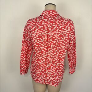 Talbots Womens MP Shirt Pink Elephant Print Top Blouse Button Roll-Tab Cotton
