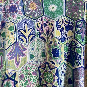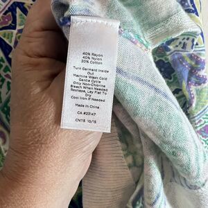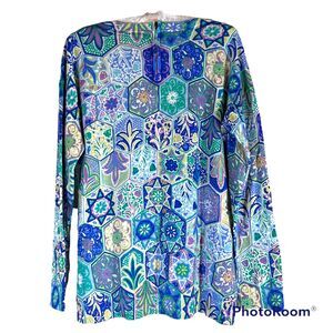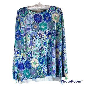 Talbots Womens Medium Floral Sweater Blue Yellow Green Mosaic Tile High Low