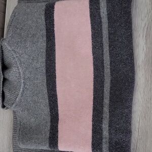 Talbots Womens Medium Grey Pink Stripe Turtleneck Sweater Warm Winter Casual