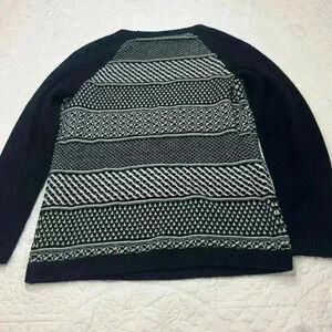 Talbots Womens Medium Petite Black and White Stripe Sweater Knit Lambswool Blend