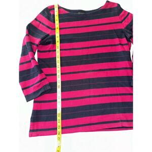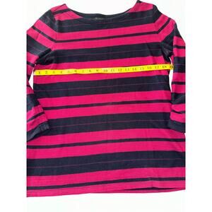 Talbots Womens Medium Purple Pink Striped Boat Neck Long Sleeve Cotton Pullover