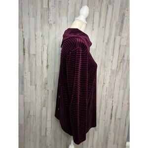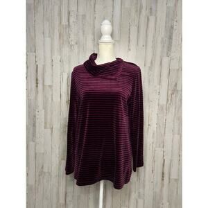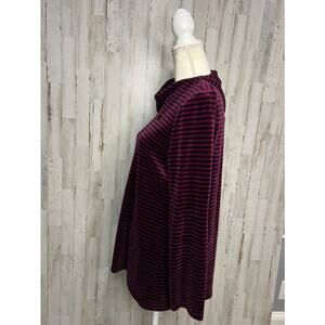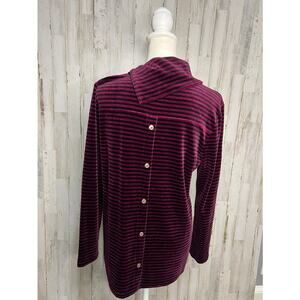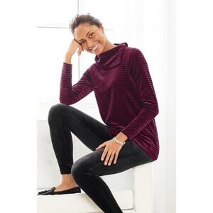 Talbots Women's Medium Red Striped Cowlneck Velour Pullover Top Long Sleeve
