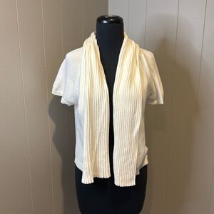 Talbots Women’s Medium Short Sleeve Knit Cardigan Cowl Sweater Top Ribbed
