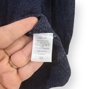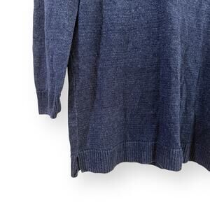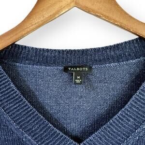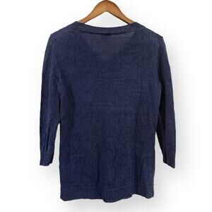 Talbots Womens Medium Sweater 100% Linen V Neck 3/4 Sleeve Navy Blue Indigo