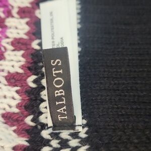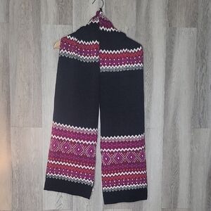 🛍Talbots Womens Merino Wool Scarf Black Pink Argyle Warm NEW