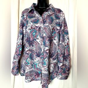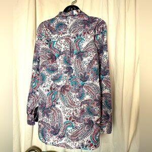 Talbots Womens Multicolor Paisley Button Down L/S Cotton Blouse Size L