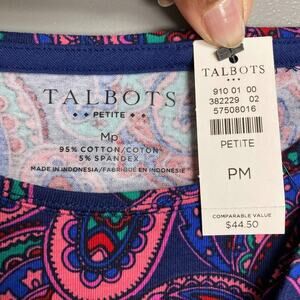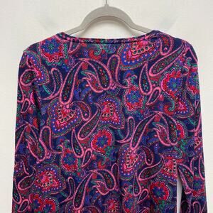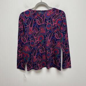 Talbots Womens Multicolor Paisley Crew Neck Long Sleeve Stretch Pullover Top PM