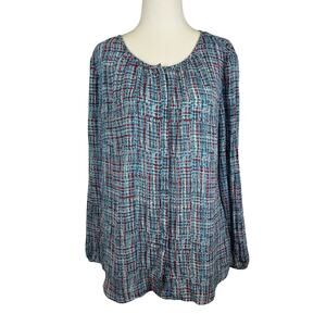 Talbots Womens Multicolor Semi Sheer Long Sleeve Blouse Sz LP | Colorful Office