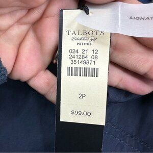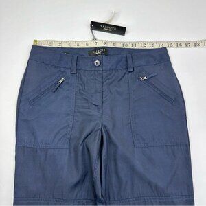 Talbots women's size 2 Petite utility pants, they are the Signature style, color is navy blue, 7/8 crop length, mid-rise, straight leg with tapered zip hem, belt loops, soft fabric, front zip pockets, back flap pockets with front button/zip closure. Materials 56% rayon, 44% cotton. Care Dry Clean Only. CA23147 Condition is new with tags as shown in the pictures. Please preview measurements to ensure fit.
