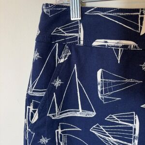 Talbots Women's Nautical Sailboat Print Navy Blue Mini Skirt Size 10