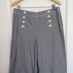 Talbots Women’s Nautical Striped High Waist Wide-Leg Deck Pants Blue/White 8