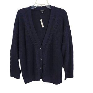 Talbots Womens Navy Blue Button Front Cardigan V Neck Long Sleeve Size 2X NWT