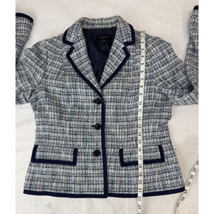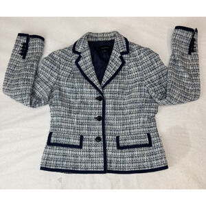 Talbots Women's Navy Blue Tweed Blazer Academia Preppy Plaid Pockets Women's 8