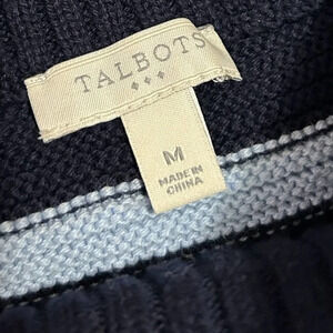 Talbots Women's Navy & Light Blue Mock Turtleneck Knit Striped Sweater Size M