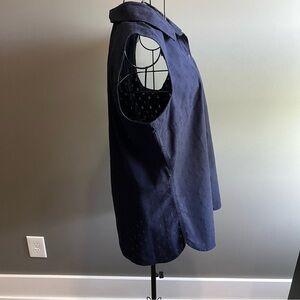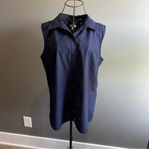 Talbots Women's Navy Sleeveless Button Down Shirt Top With Anchor Cutout Detail