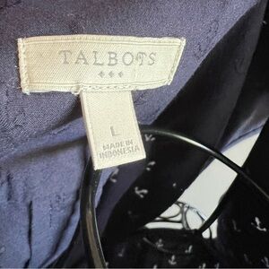 This elegant sleeveless blouse from Talbots features a fitted design with a notched collar, offering a sophisticated look. The deep blue color adds a touch of versatility, making it suitable for both professional and casual settings. Its minimalist style ensures a timeless appeal.