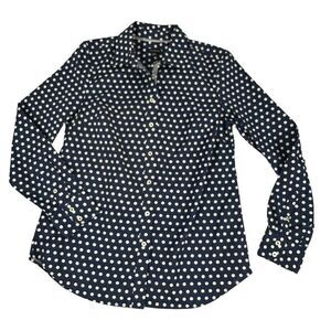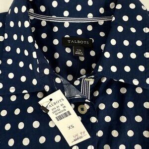 Talbots Womens Navy White Polka Dot button down shirt XS NEW