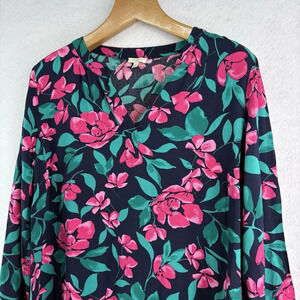 Talbots Women’s Navy/Pink Floral Split Neck Long Sleeve Blouse Size Large
