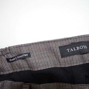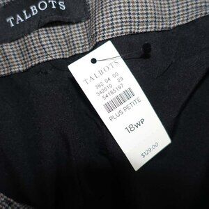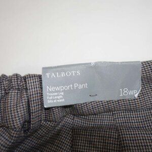Talbots Women's Newport Trouser Leg Dress Pants Features Newport Trouser Leg Dress Pants Stretch Waistband Flat Front Houndstooth Pattern Button and Metal Closure Zipper Fly Measured Waist/Inseam of 38x29.5 Brand New $129.00 MSRP Price Brand: Talbots Size: 18W Petite Color: Brown and Gray Condition: New With Tags Fabric: 40% Wool, 29% Polyester, 28% Viscose, 3% Spandex Measurements Waist: 19 (38 inches doubled) Hip: 24 (48 inches doubled) Front Rise: 12 inches Back Rise: 15 inches Inseam: 29.5 inches Outseam: 40 inches Leg Opening: 9.75 inches