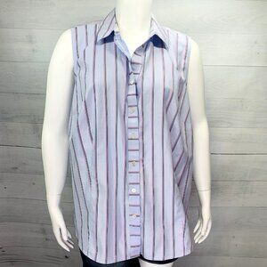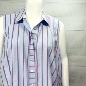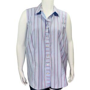 Talbots Womens Non Iron Shirt Button Blouse Sleeveless Blue Stripe Plus Size 24W