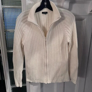 Excellent like new condition. Talbots ivory heavy weight ribbed cardigan. Full zipper front and long sleeves. Size medium. See photos for measurements