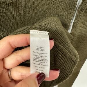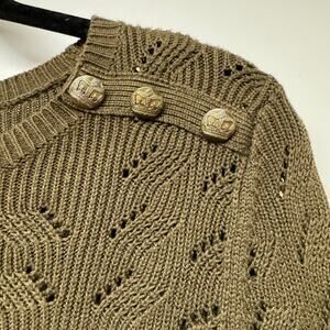 Talbots Womens Olive Green Scoop Neck Sweater Brass Buttons Open Knit Size XS