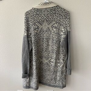 Flattering longline cut with cuffed sleeves and a gorgeous fair isle print.