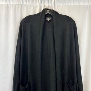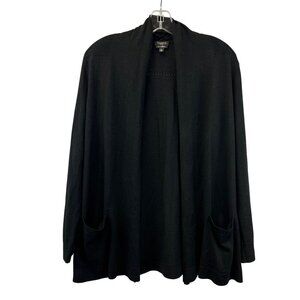 Talbots Womens Open Front Merino Wool Cardigan Black Sweater Size Small Petite