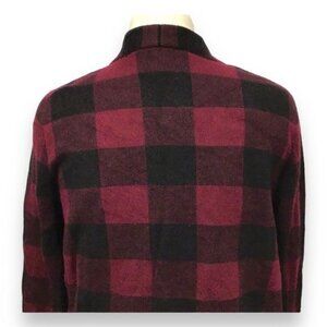 This Talbots Women's Open Front Cardigan is crafted from pure Merino wool in a striking red and black buffalo plaid. Its timeless design ensures a stylish and warm addition to your winter wardrobe.