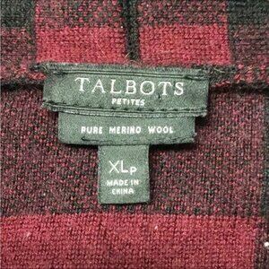 Talbots Petites Women’s Open Front Pure Merino Wool Buffalo Plaid Sweater Cardigan