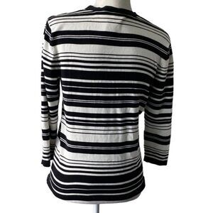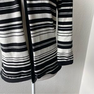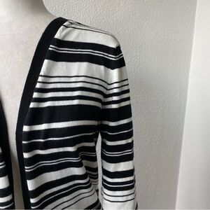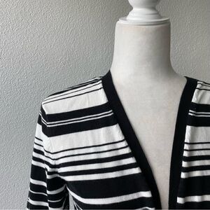 Talbots Womens Open Front Cardigan Black White Striped Sweater SZ M