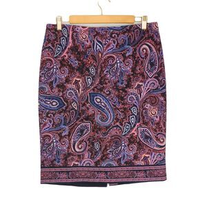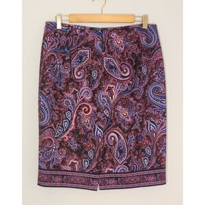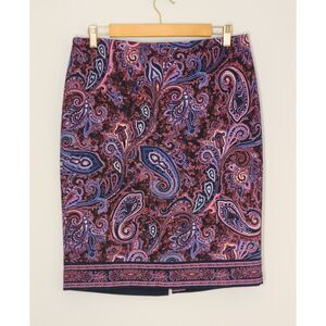 Talbots Womens Paisley Pencil Skirt Purple Blue Above Knee Colorful Size 10