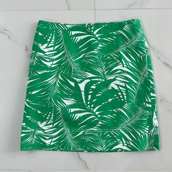Talbots Women’s Palm Tree Leaf Green/White Tropical Print Skirt Sz 8P
