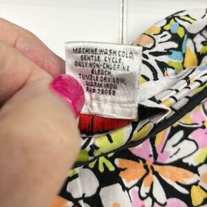 Talbots Womens Pants 12 Black Pink White Side Zip/Button Floral Straight Leg Ribbon on Waistband 97% Cotton Bright Cheerful Versatile EUC