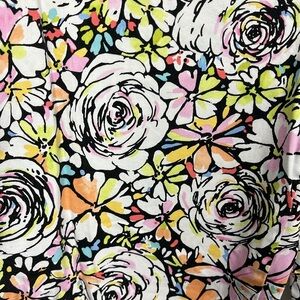 Talbots Womens Pants 12 Black Pink Side Zip Floral Straight Leg Bright Cheerful