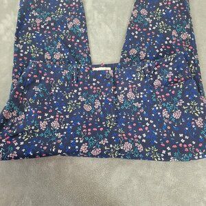 Talbots Womens Pants 20W Plus Capri Blue Floral Zip Fly Comfy Pockets FLO31E