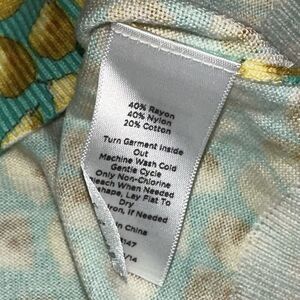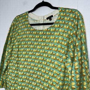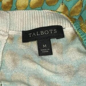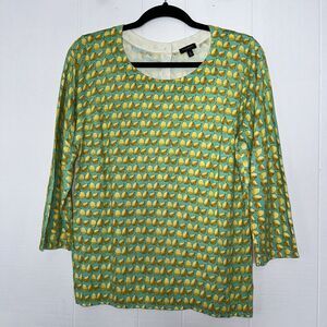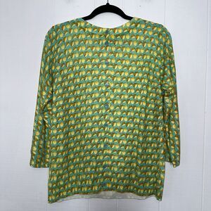 Talbots Women’s Pear Print Sweater Teal Yellow Button Back Size Medium