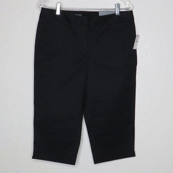 New With Tags! 98% Cotton/2% Spandex. Beautiful Black Hidden Closure(zip, hook & button) Pedal Pusher-Length Slim Leg Sits at Waist Multipocketed Capris Pants. Retail~ $69.50.