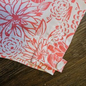 These stylish Talbots Women's Perfect Skimmer Cropped Capri Pants in size 10. The floral print in pink and white adds a touch of feminine grace to these pants, making them perfect for any occasion, be it travel, casual outings, or business meetings. The pants are made of a comfortable cotton blend fabric and feature a flat front, mid-rise waist, and tapered leg style.