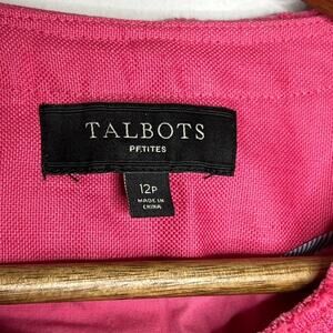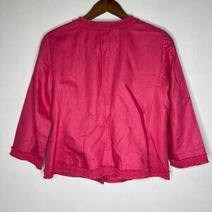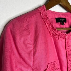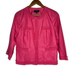 Talbots Women's Petite 12P Pink Linen Blend Jacket Fringe Trim 3/4 Sleeve