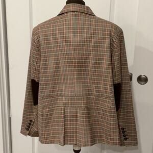 Talbots Women’s Petite Brown Orange Plaid Elbow Patches Blazer Jacket Size 20WP