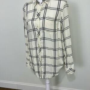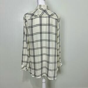 Talbots Women’s Petite L Plaid Button Down Shirt Cream Black Long Sleeve