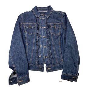 Talbots Women's Petite Ruffled Denim Jacket Dark Wash Small Petite SP - NWT Butt