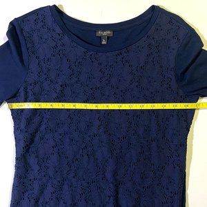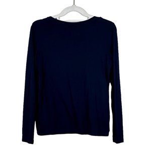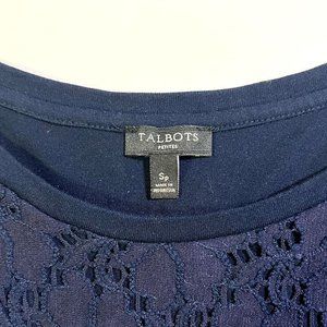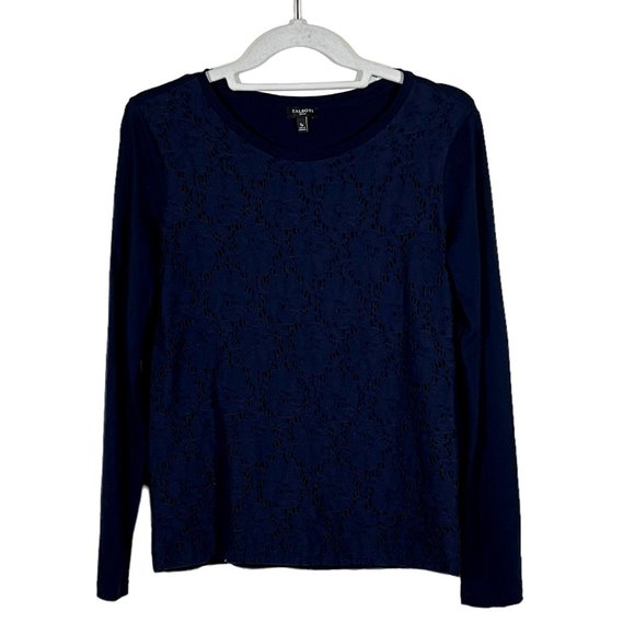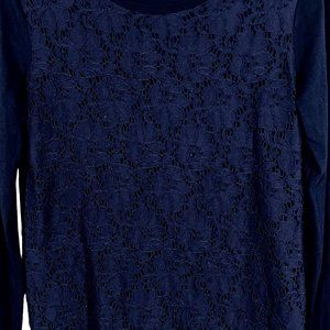 Talbots - Women's Petite Size S - Dark Blue Lace Floral Patern Top - Long Sleeve