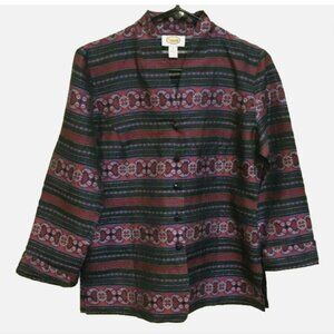 Talbots Womens Petites 4P Button Front Suit Jacket Top Blouse Silk Burgundy Navy