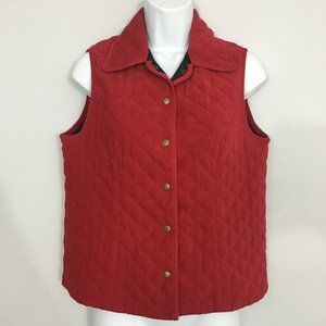Talbots Womens Petites Stretch Red Quilted Gold Snap Front Polyester Blend Vest