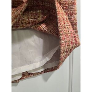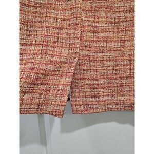 Elevate your wardrobe with this gorgeous Talbots pencil skirt in a lovely pink and beige tweed pattern. Perfect for work or casual wear, this skirt features a zip closure and falls to a mid-rise length. The skirt is made of a comfortable blend of polyester and rayon, and it has a straight and pencil style that will flatter any figure.