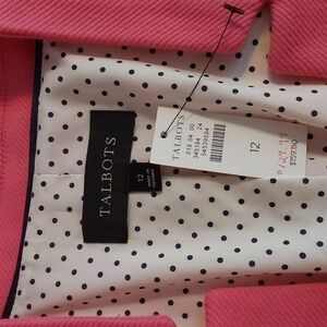 Talbots- Womens Pink Blazer/Suit Jacket Black & White Polka Dot lining Sz.12