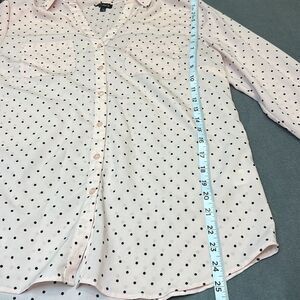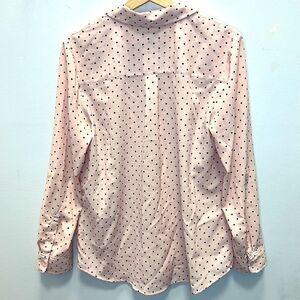 Get your EUC Women’s Pink Button Up Long Sleeve Blouse Black Polka Dots in Size Medium by Talbots now!